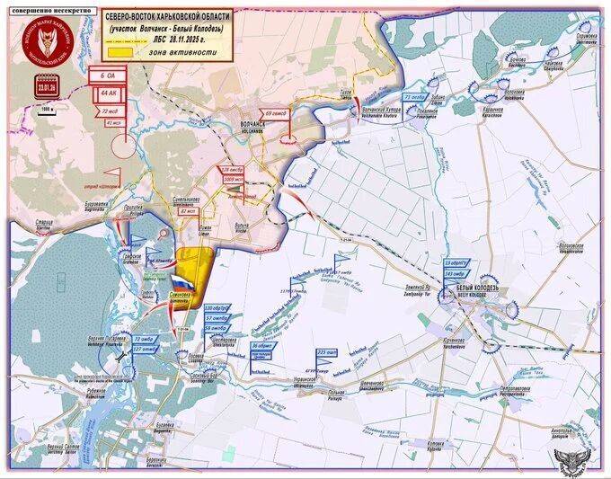 “北方”集团军指挥部沿T-21-04路线由北向东推进,切断了沃尔昌斯克胡托尔斯-斯塔里察一线以南的乌军。